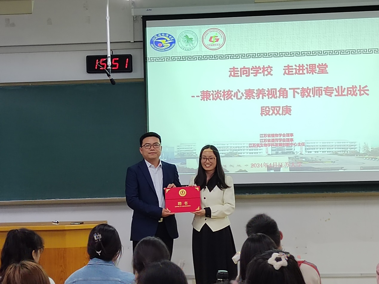 In the second stage, Duan Shuanggeng gave a lecture on "Entering Schools and Classrooms ---A Teacher’s Professional Growth from the Perspective of Core Competencies". He provided a detailed introduction to the new curriculum, new textbooks, and new college entrance examination plan, elaborated on the repositioning of teacher development under core competencies and the transformation of the role of class teachers, and shared the cultural construction and moral education of Dagang Middle School. After the lecture, Li Xia presented a lecture invitation letter to Duan Shuanggeng.