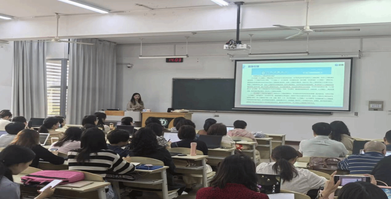 On the afternoon of April 11, to promote the application of artificial intelligence technology in foreign language education and comprehensively enhance the digital intelligence literacy and course development capabilities of foreign language teachers, the School held a special training workshop titled "AI-Empowered Course Development" in Room 2207 of Jingjiang Building. As arranged by the Academic Affairs Office, the training featured a special report delivered by a senior expert from the Digital Intelligence Research Center of Chaoxing Group. The workshop was chaired by Hua Houkun, Director of the Basic Public English Teaching Department. Faculty members of the School gathered to explore innovative pathways for foreign language education in the context of digital intelligence.
