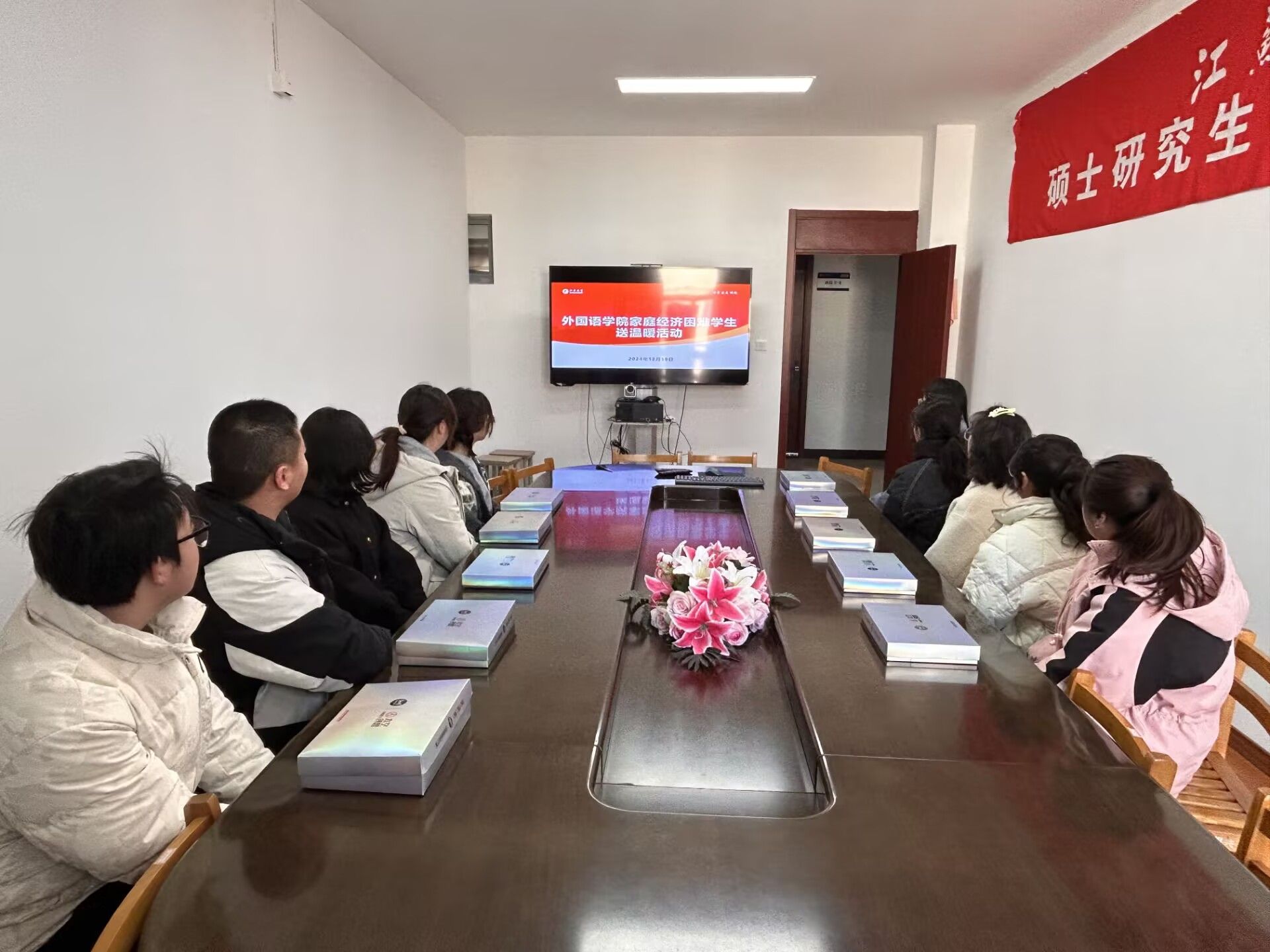 为在寒冬中传递温暖与关怀,激励2024级家庭经济困难学子以积极心态迎接未来,2025年2月18日,伟德国际1946在京江楼2508教室举办了一场温馨的“冬日送温暖”活动。
