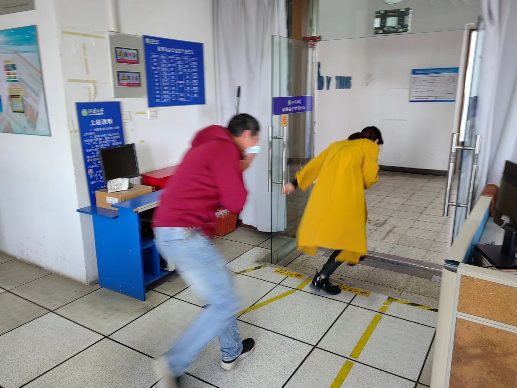 3、余秀英立刻组织学生a和学生b(实验室人员装扮)从安全通道撤离,并通知实验室其他人员。