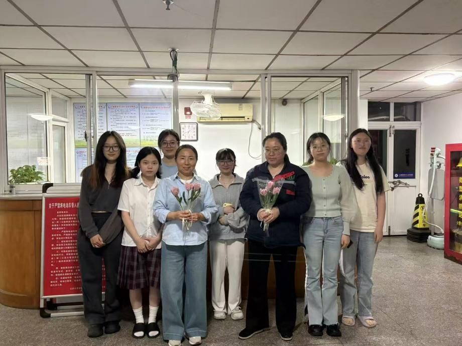 在母亲节到来之际,同学们带着亲手制作的花束和书签,来到宿舍区,将这份饱含心意的礼物送给宿管阿姨。宿管阿姨们收到礼物后,脸上洋溢着幸福的笑容,对同学们的暖心之举表示衷心感谢。