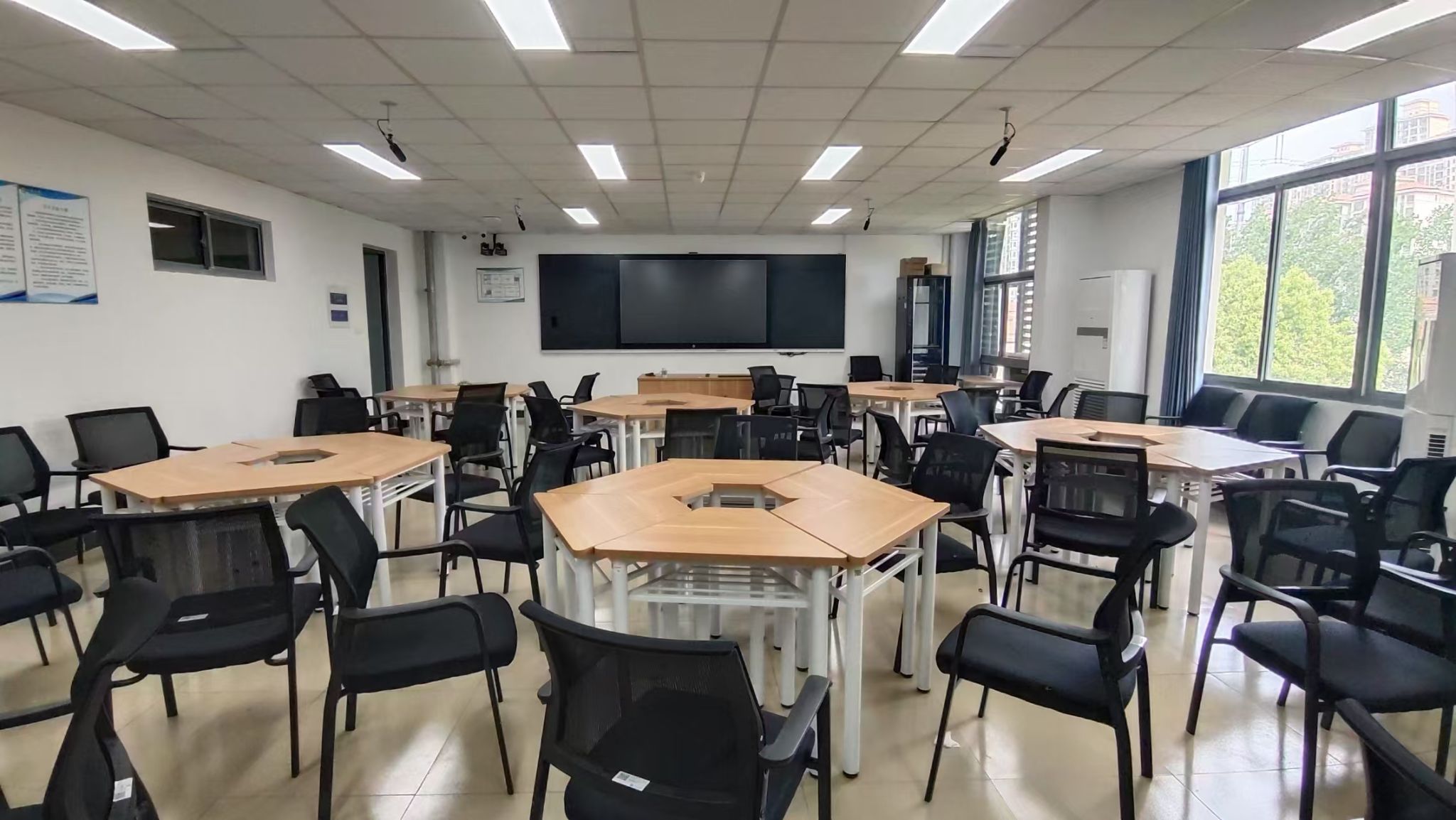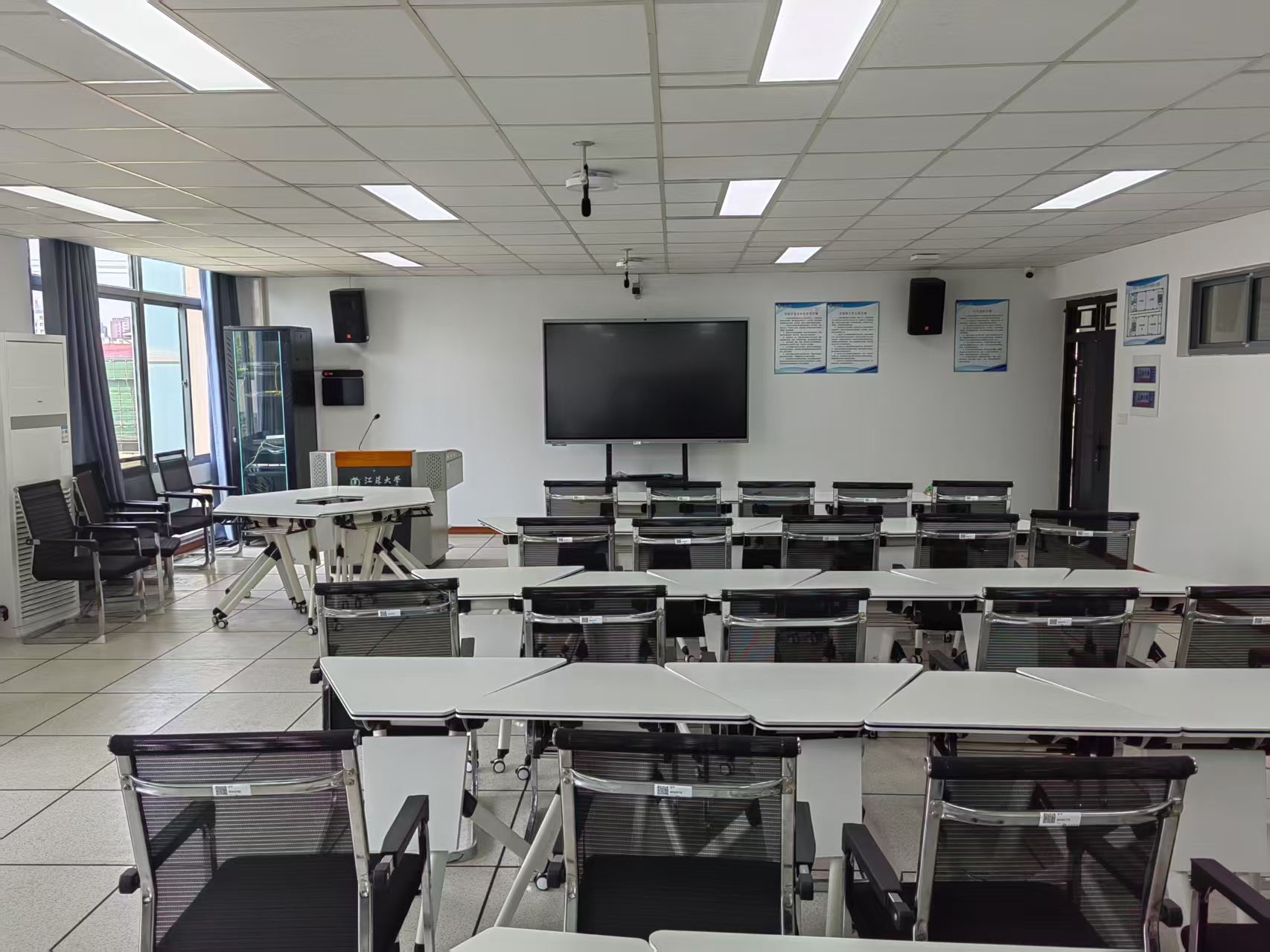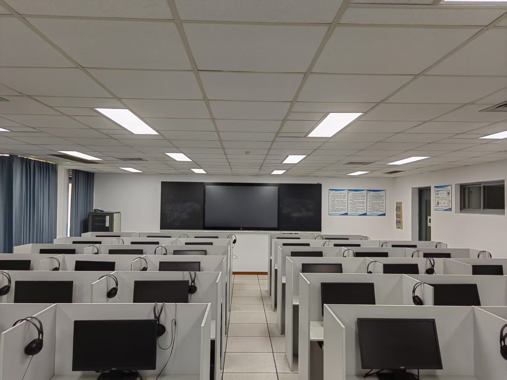 目前外语学习中心地处京江四号楼3-5楼,各类语音室共计10间占地约1050平方米,另有外语发射台4间(分布在三江楼、三山楼群、研究生以及京江三号楼)负责各类外语听力考试的放音工作。